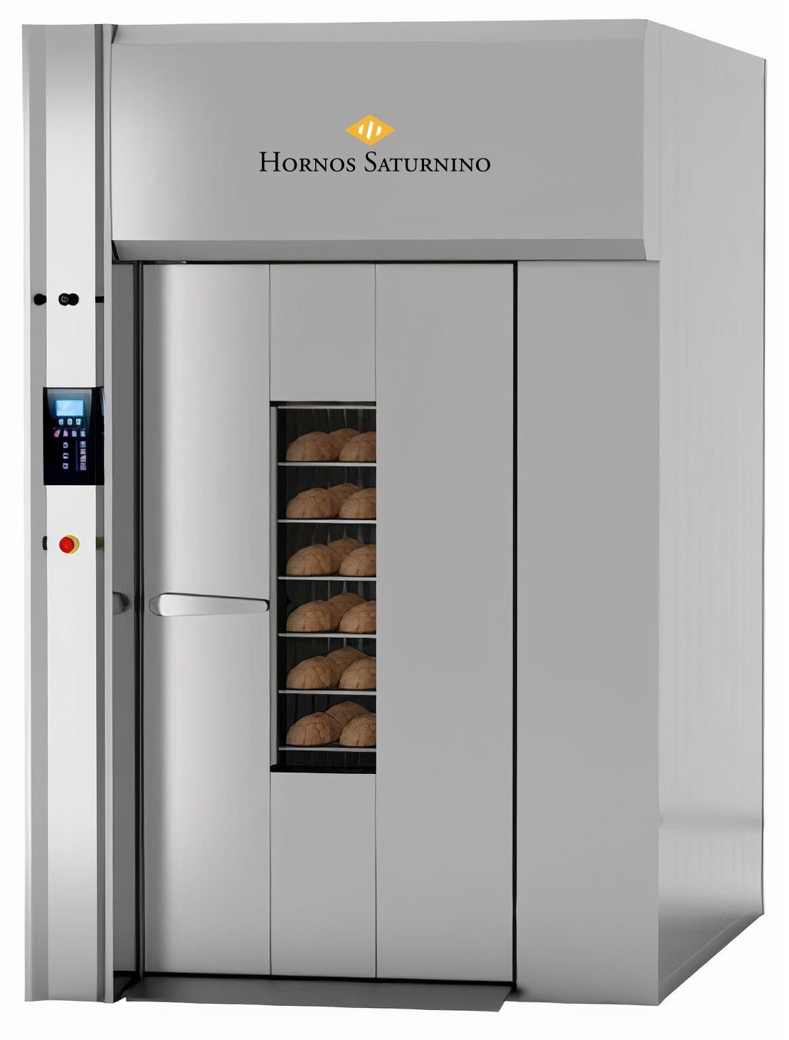 El horno Rotativo Saturnino C, es un horno de cocción por aire caliente, ideales para elaboración de toda clase de productos, pan, bollería. Este modelo cuenta con las siguientes características: